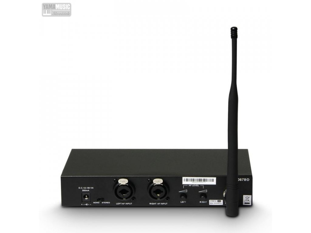 Součástí balení je bezdrátový přijímač s knobem pro nastavení hlasitosti, sluchátka, adaptér, rozšiřující držáky pro upevnění do 19‘‘ racku a kufřík.