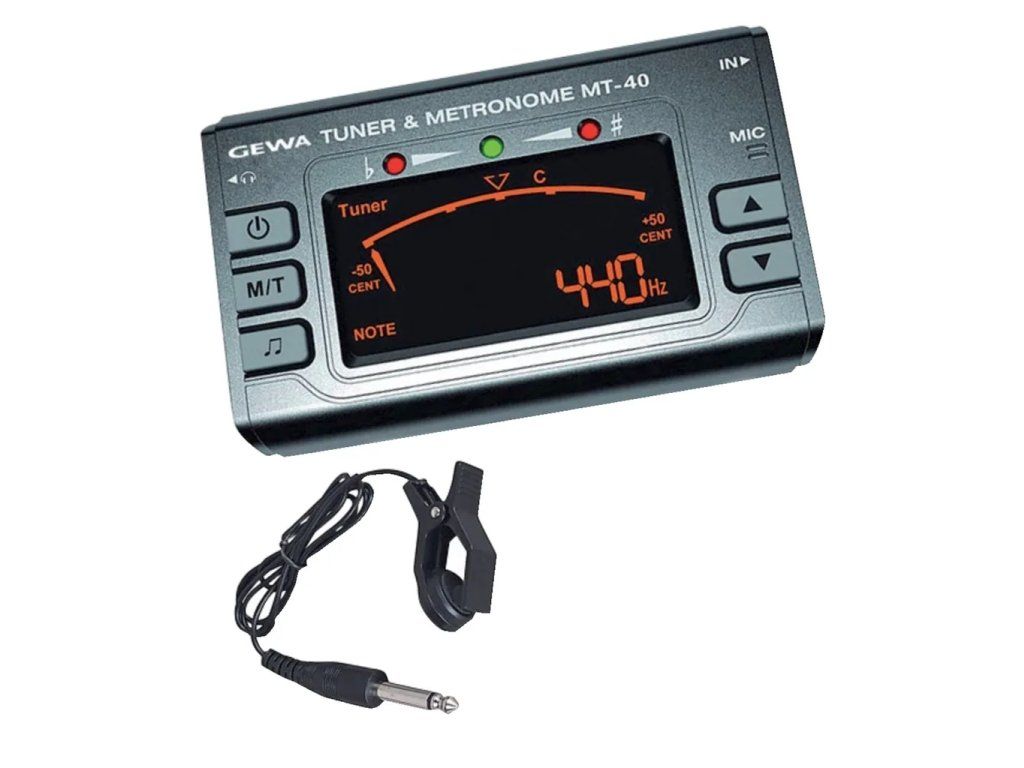 Chromatická ladička a metronom GEWA s podsvíceným LCD-display a 3× LED.