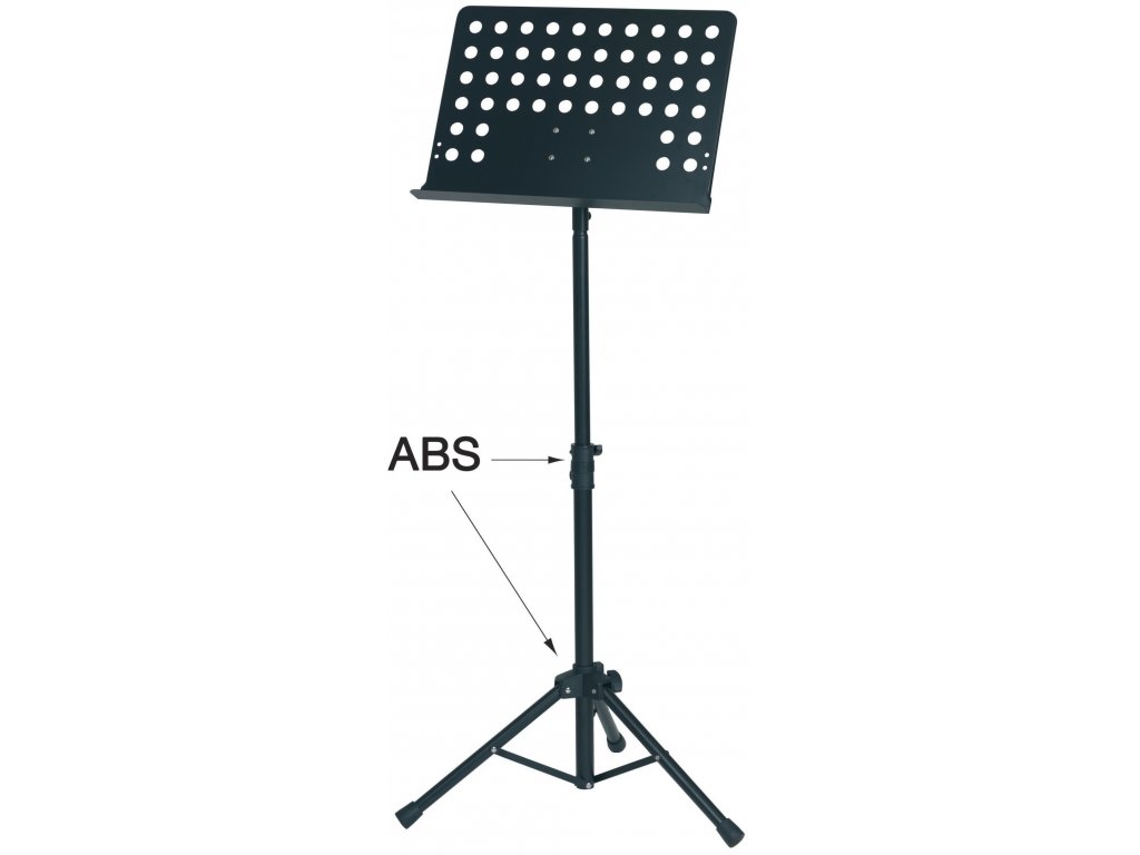 Notový stojan s plechovou děrovanou deskou, spoje ABS plast, černý