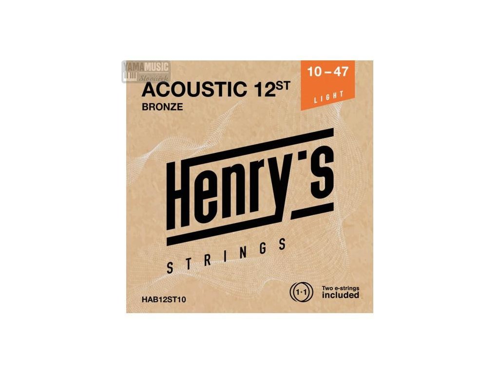 HAB12ST10 je sada strun o síle .010 - .047 pro dvanáctistrunnou akustickou kytaru od značky Henry‘s Strings. Bronzové struny s ocelovým jádrem mají válcové vinutí a zakončení kuličkou (ball end). Vyznačují se cinkavým zvukem, hlasitostí a průrazností akustických tónů. Kytaristé ocení jejich dlouhou životnost, výbornou intonaci a zvukovou flexibilitu. Sada s tenzí .010 -.047 je ideální variantou, která nabízí jak silný zvuk i pohodlnou hru akordů či barré hmatů. Balení obsahuje dvanáct strun a jednu náhradní nejtenčí strunu e1.
