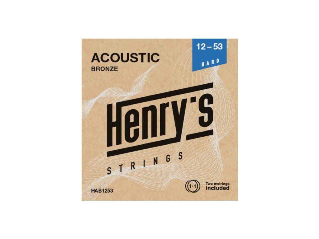 HAB1253 je sada strun o síle .012 - .053 pro akustickou kytaru od značky Henry‘s Strings. Bronzové struny s ocelovým jádrem mají válcové vinutí a zakončení kuličkou (ball end). Vyznačují se cinkavým zvukem, hlasitostí a průrazností akustických tónů. Kytaristé ocení jejich dlouhou životnost, výbornou intonaci a zvukovou flexibilitu. Sada .012 -.053 má vyváženou tloušťku strun a průzračný silný zvuk, je určena zkušenějším hráčům, kteří mají jasno. Balení obsahuje šest strun a jednu náhradní nejtenčí strunu e1.