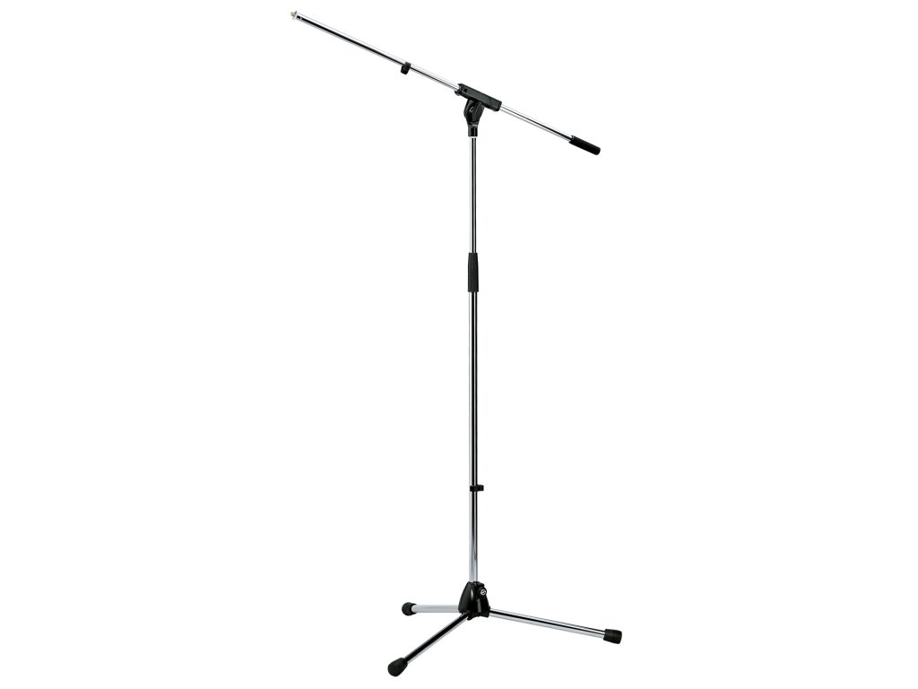 Stojan mikrofonní K&M chromovaný, třínohý podstavec.